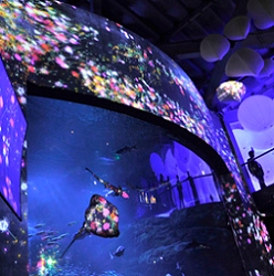 「チームラボ」は、新江ノ島水族館だけでなく、日本やアジアのいろいろなところでコラボして、お絵かき水族館などをやっています。